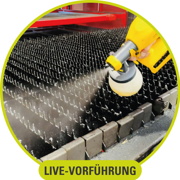 Überzeugen Sie sich selbst - direkt bei Ihnen vor Ort Erleben Sie die professionelle Reinigung Ihres Schneidtisches live in Ihrer Produktion. Wir zeigen Ihnen vor Ort, wie unser 3YO TS Pflegemittel Ihre Laserlamellen schnell, sicher und nachhaltig pflegt. DAS ERGEBNIS IHR VORTEIL Jetzt Termin sichern und live erleben! |
