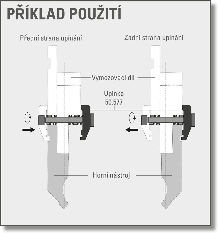 Pro každé prodloužení, vymezovací díl a adaptér horního nástroje potřebujete jednu upínku dle Vašeho výběru!